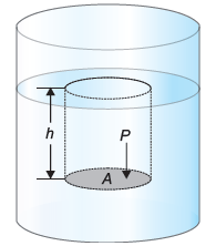 Consider a surface of area “A” in a liquid at a depth “h” as show by shaded region in figure. The length of the cylinder of liquid over this surface will be the weight “w” of the liquid above this surface “p” is the density of the liquid and “m” is mass of liquid above the surface. As we know that;