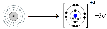 Aluminum belongs to Group III A. It has three electron in the valence shell. Aluminum atom loses these electrons and is left with octet.