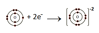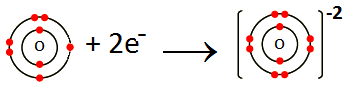 Oxygen gains two electrons and become O-2