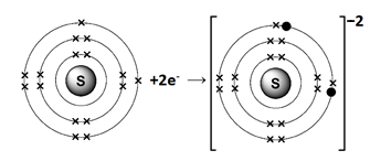 S 1s2 2s2 2p6 3s2 3p4+2ē S-2 1s2 2s2 2p6 3s2 3p6
