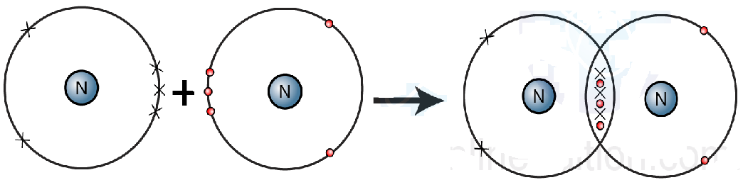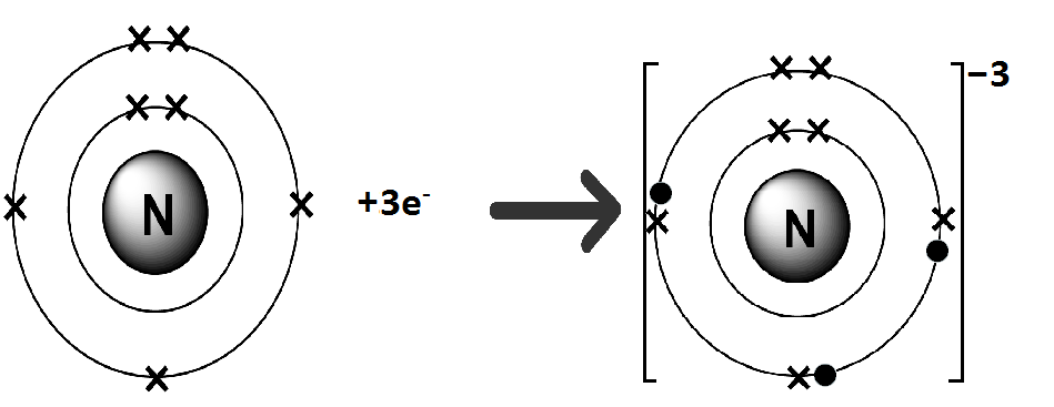 Nitrogen belongs to Group VA. It has five electrons in valence shell. It gains three electrons to complete octet.