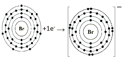 Br atom has seven electrons in outermost shell, it gains one electron to complete its octet and become Br-1 ion.