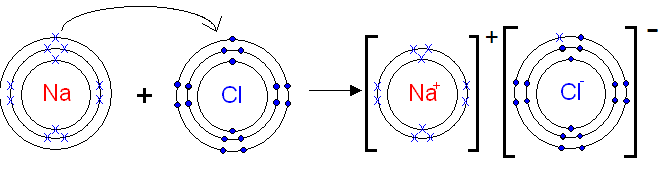 Na is metal and Cl is non-metal. Na atom has one electron in its outermost shell. It loses one electron to form Na+ ion. Since Cl atom has seven electrons in outermost shell, so it gains one electron to form Cl– ion.