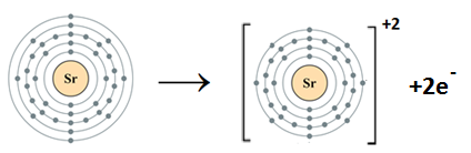 Sr atom has two electrons in the outermost shell. it loses two electrons to complete octet.