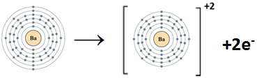 Ba:1s22s22p63s23p63d104s24p64d105s25p66s2Ba+2 :1s22s22p63s23p63d104s24p64d105s25p6 +2e–