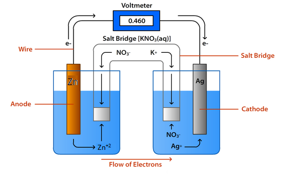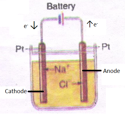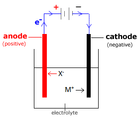 Identify the anode, cathode and indicate the direction of flow of electrons.
