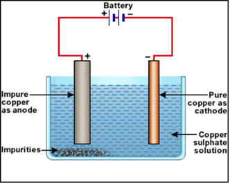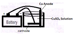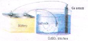 Ans. The anode is made of copper metal and the electrolyte is CuSO4 to which a few drops of sulphuric acid are added to prevent its hydrolysis.